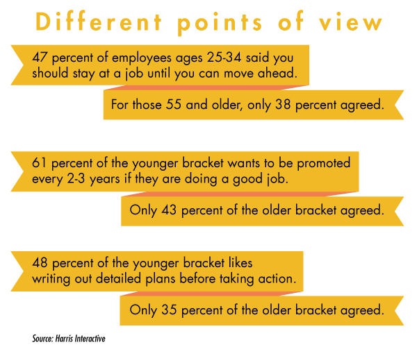 “You’ve got to back up and try to remember what it was like to be in your 20s, and what experiences haven’t they had yet, and what their priorities are,” O’Donnell said. She added that the priorities of Boomers are much different than Millennials, who may not have homes or children to look after. She said young supervisors are more likely to desire interaction with their employees outside of work. Older employees should make an effort to embrace these kinds of differences.